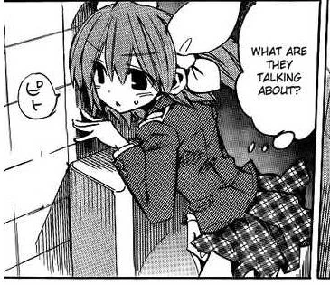 After Saten & Cruz returned to the real world, Disk had a private talk to Blade & Eve, concerning a mysteryabout human fetuses in cans. Disk said that they can solve the mystery if they go to the city. As Cruz was about to pee, he accidentaly heard Blade, Disk & Eve's voices through the wall. Cruz got interested so he eavesdropped them. He heard that they plan to make him take a capsule which knocked him out. Meanwhile, Cruz had a nightmare where Mengroze captured him & plans to perform an experiment on his body, regaining his consciousness back. Cruz saw a letter stating that Mio went back to Kuchinashi & Setsuna. He used his Girl Squad ID to be able to pass through.