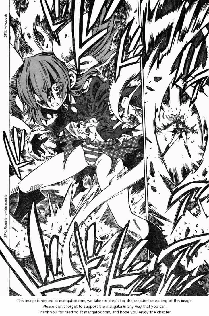 A TV Report ordered the citizens of Japan to evacuate since Needlesses has entered the city. This time, the buildings started to collapse & Cruz was trying to escape from it. While escaping, Cruz admitted that he dreamed of living in the city because having powers isn't a big deal there but it he said that it was actually full of intentional lies. After being able to climb up, Cruz saw Teruyama's corpse & was shocked. After Setsuna discovered that Cruz was wandering about the building, Setsuna, Kuchinashi & Mio have a mission of killing Cruz. But instead of coping up with the two, Mio wanted to save Cruz. Then she found Teruyama & asked the scientists to release his corpse. Accidentaly, a stick of Eden's seed, that came from Uten, fell to her hand & immediately sticked it to Teruyama's head.