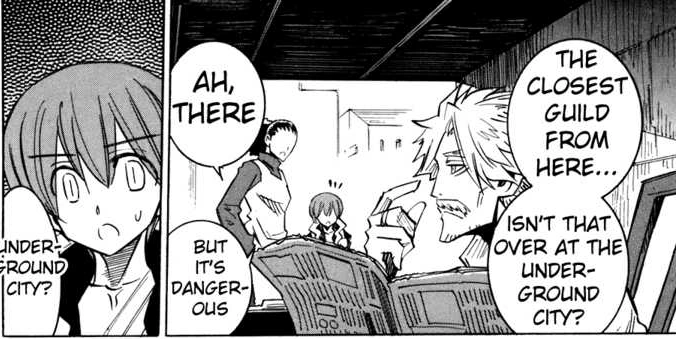 After having Mio's weapon/ toy repaired, Mio & Cruz started looking for places where Blade & the others possibly are. Cruz then suddenly remembers about the guilds, where Sato, Solva & Blade used to be. As they were asking others about it, one suggested that the closest guild was over Underground City. After finding its guild, Cruz asked them about Blade but since they don't have money, they refused to help them & said that they don't have access